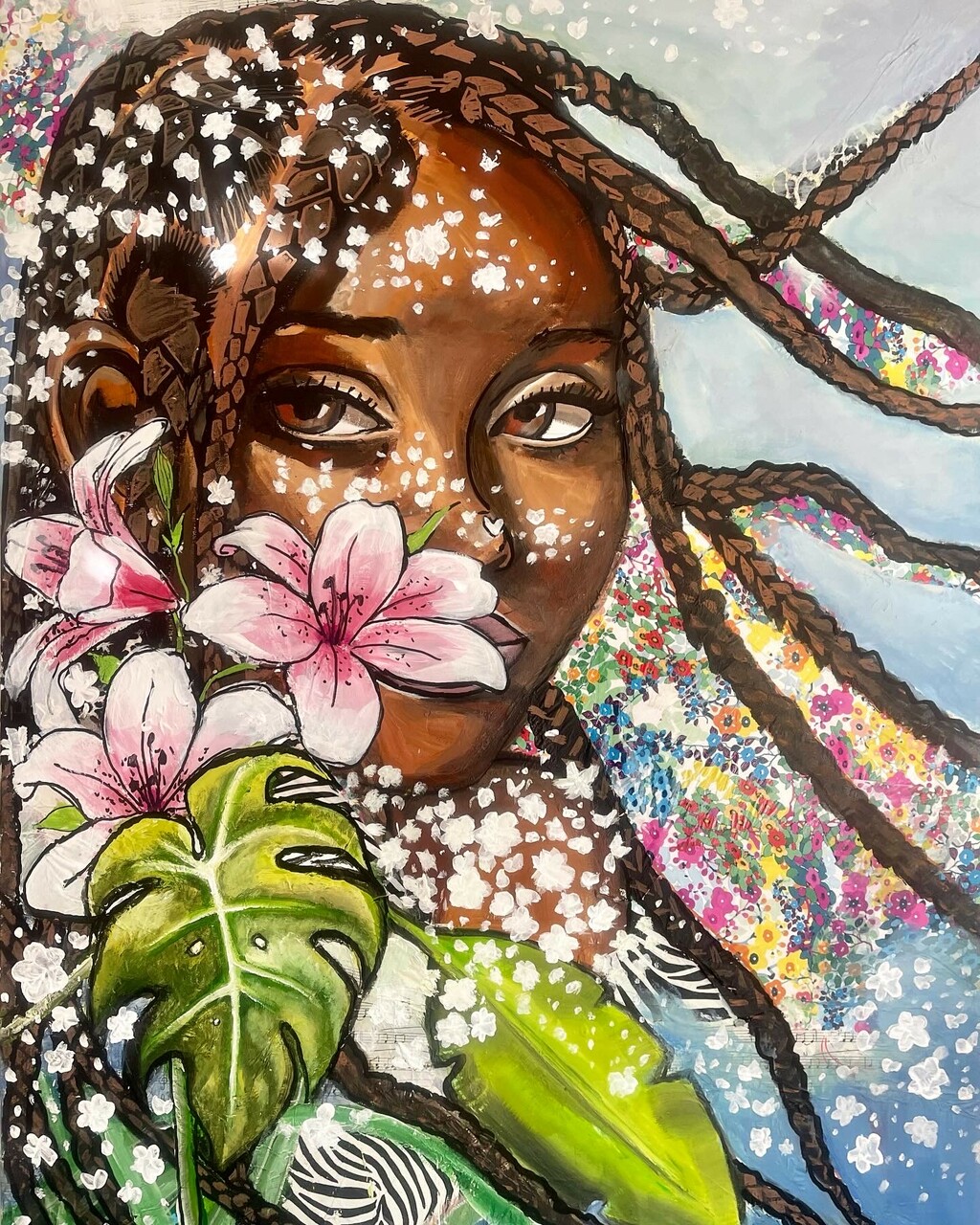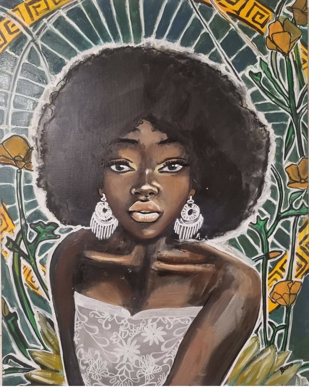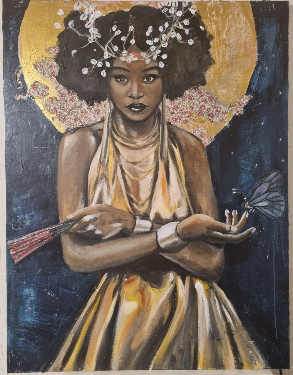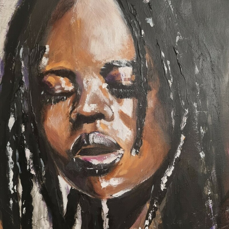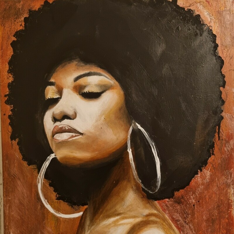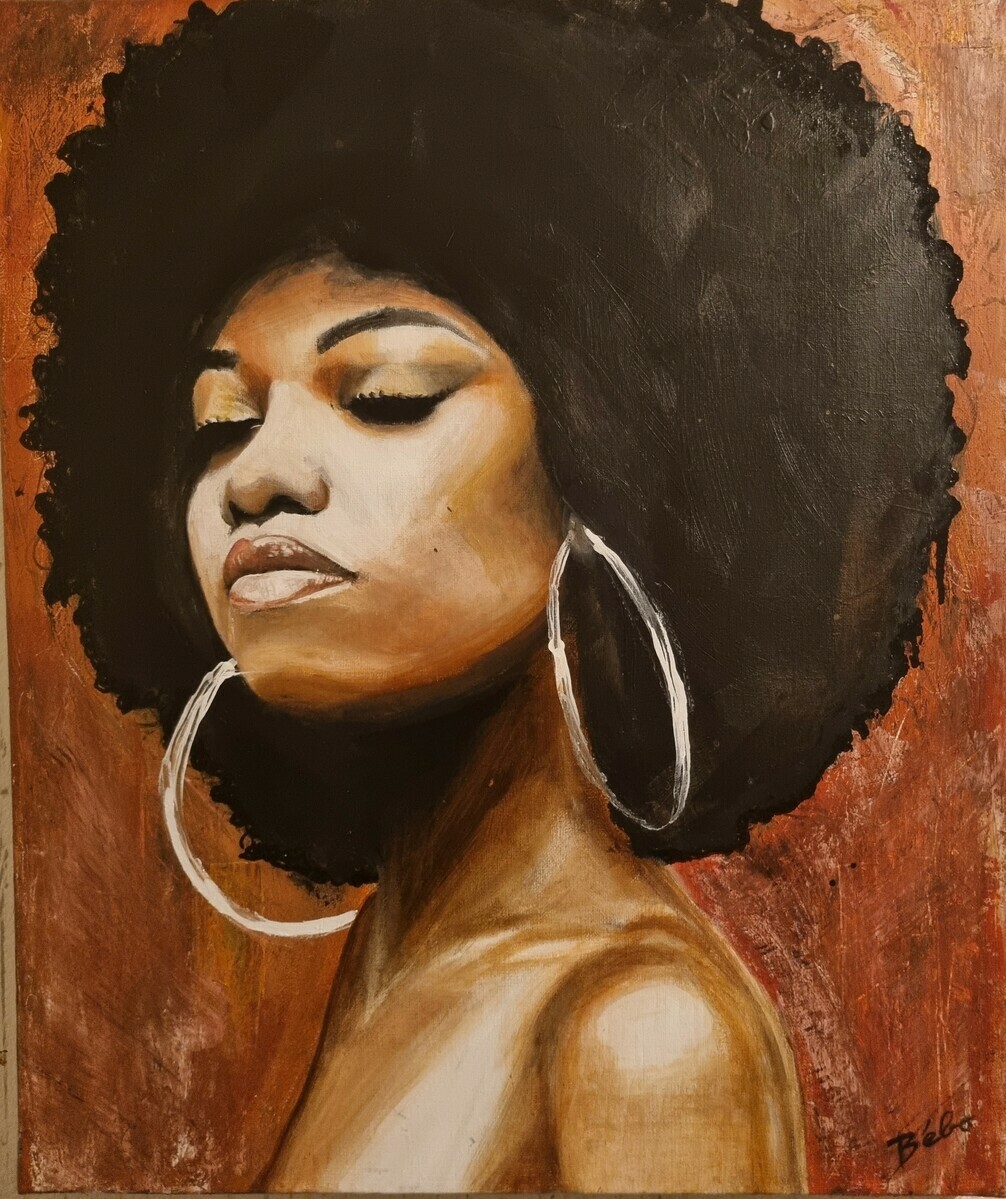 Au cœur de mon travail, se trouve l'objectif de déconstruire les perceptions souvent négatives qui entourent la beauté noire. À travers mes œuvres, je m'efforce de célébrer l'amour de soi, une notion essentielle dans le cheminement vers l'acceptation personnelle. En célébrant la diversité et la puissance féminine, j'espère inspirer un changement positif au sein de la société et encourager chacun à adopter une acceptation culturelle authentique.