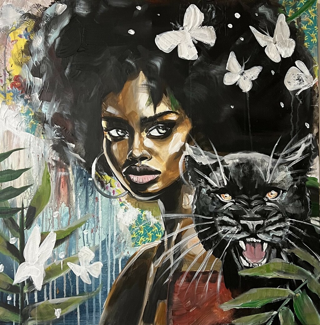 Au cœur de mon travail, se trouve l'objectif de déconstruire les perceptions souvent négatives qui entourent la beauté noire. À travers mes œuvres, je m'efforce de célébrer l'amour de soi, une notion essentielle dans le cheminement vers l'acceptation personnelle. En célébrant la diversité et la puissance féminine, j'espère inspirer un changement positif au sein de la société et encourager chacun à adopter une acceptation culturelle authentique.